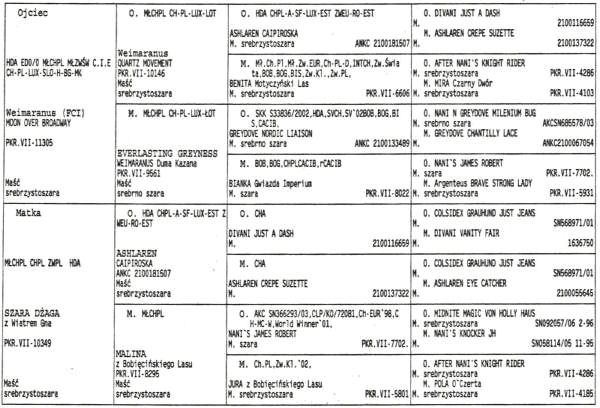 ułożenie FLEUR oraz życzymy wielu sukcesów wystawowych i hodowlanych.